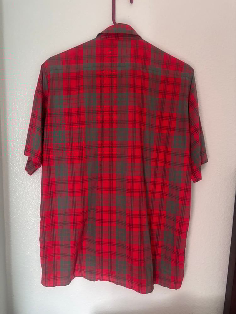 ** I sewed a tiny hole on the right sleeve in the front and there’s just three little black dots under the chest pocket but other than that it’s in excellent condition