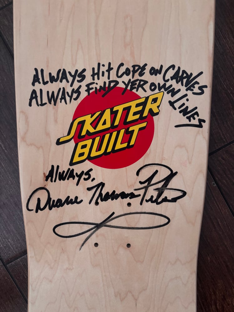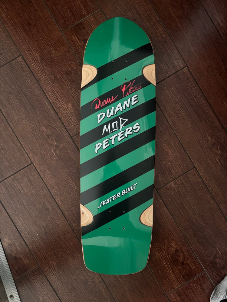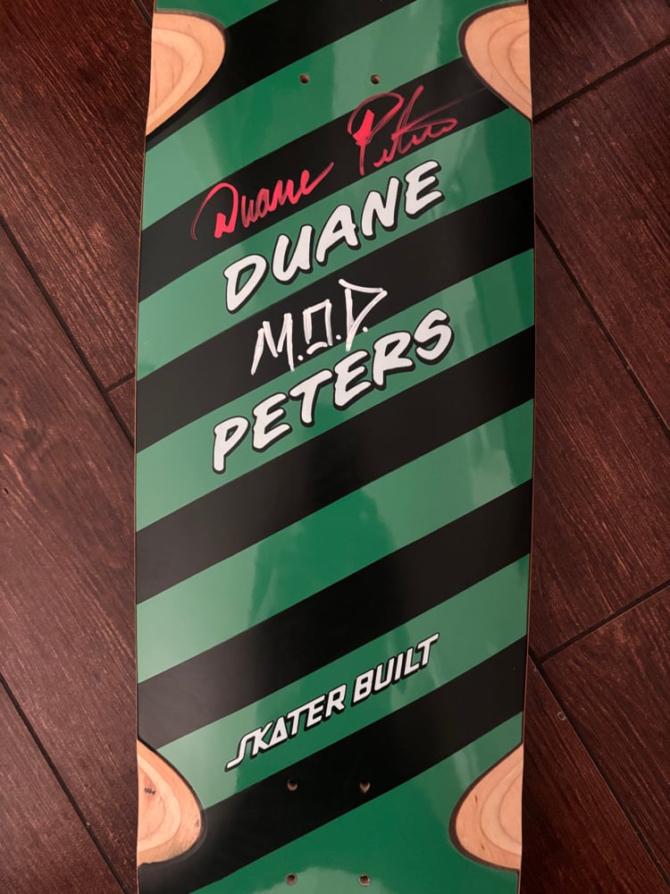 DUANE PETERS SKATERBUILT DECK signed grn/blk stripe