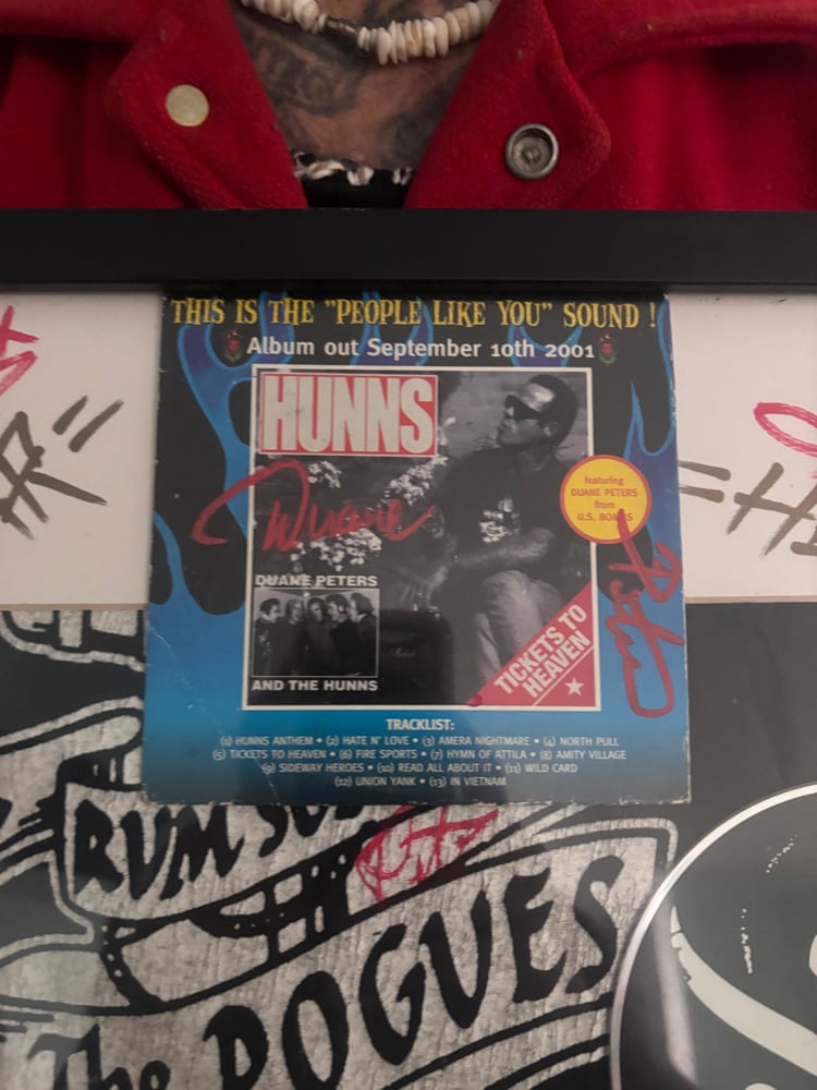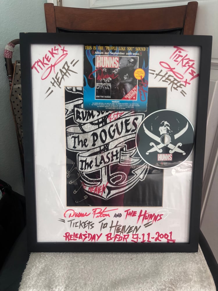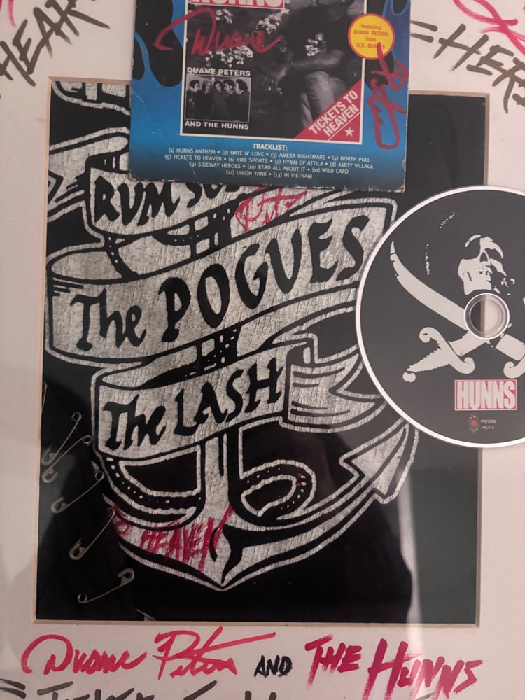THE HUNNS TIX TO HEAVEN & POGUES T SHIRT FRAMED